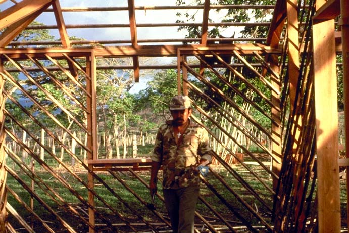屋顶结构是木椽,在木椽的顶部放置cana castilla来支撑耐火粘土瓦。两根cana并排放置,每一对cana之间必须留有12英寸的间隔用来符合放置粘土瓦的需要。