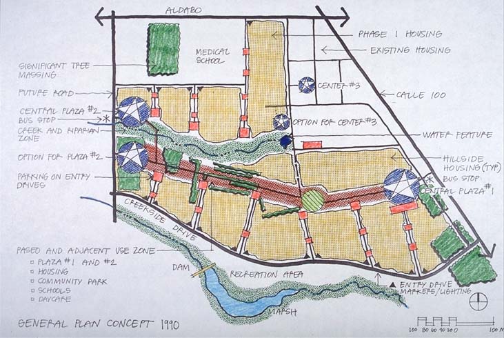 讨论的焦点是:支持汽车的一方注意到只需增加数百英尺的道路,和几处可连接街道的支公路。这会使小车很容易通行。因为我们知道谁是拉斯.阿尔鲍勒达斯将来的居住者,我们能够与们面谈此事,征求他们的取向。贯通的街道很方便小车通行。另一方面,交通会更加快捷,流量也会增大,噪音随音随之而来,对小孩也不安全,从而影响了整个社区亲切的气氛。人们很明白他们愿意选择一个更加亲切的邻里关系,不愿受小车的影响。