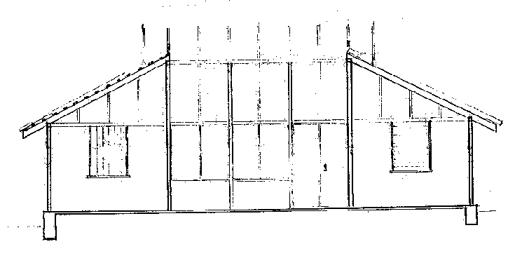 The roof is built with a 6:12 pitch. A common error in the countryside is building roofs with a low pitch. This increases problems with leakage and also deterioration of wood members. 2' overhangs are used on all sides. At the walls they protect the adobe from excess exposure to rain, reduce problems of water entry at all points including windows. The overhangs
