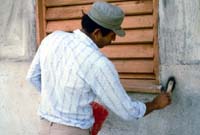 Doors and window are made of wood. We are experimenting with several designs. We have used louvered windows (persianas) which provide control of ventilation and entry of sun. We have also used hinged wooden windows. A problem we are facing is developing a paint or finish that can be made locally.